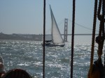 More recently one of my friends came along to do some of that helping with my research for Sapphire. This current work in progress takes place on a clipper ship in the mid-1800’s. When we heard that the Lady Washington, an exact replica of the original tall ship, was coming to down we headed down to Sausalito, California to spend the day on board sailing. The crew was fantastic and the steward, Cat, spent the better part of two hours answering questions, helping with plot points and describing life what they know of life on the high seas. (She’s lived on board for most of the past 3 years). While we cruised the way the Lady Washington and its traveling companion, the Hawaiian Chieftain had a mock battle complete with cannons. They say if you can sail San Francisco bay you can sail anywhere. The day of our sail was warm, sunny and crystal clear.